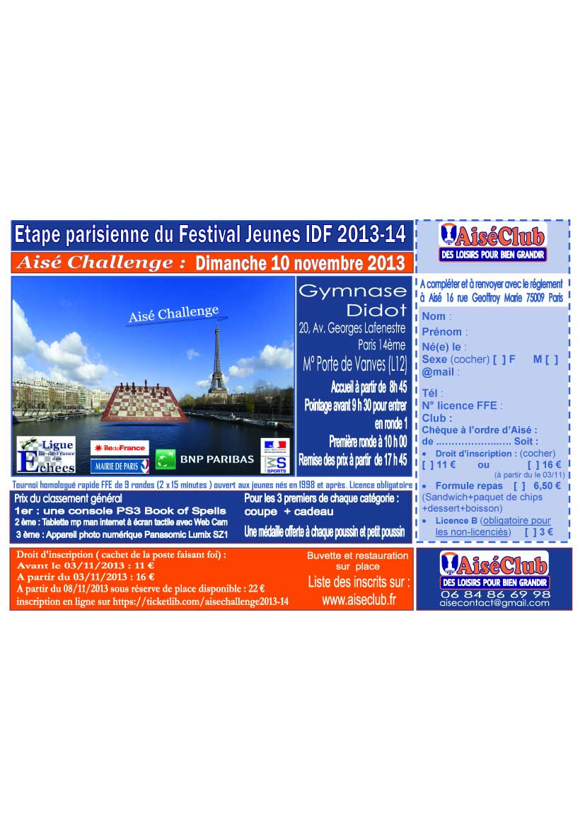 Dimanche 10 novembre: Festival jeunes organisé à Paris (donc très facile d'accès).